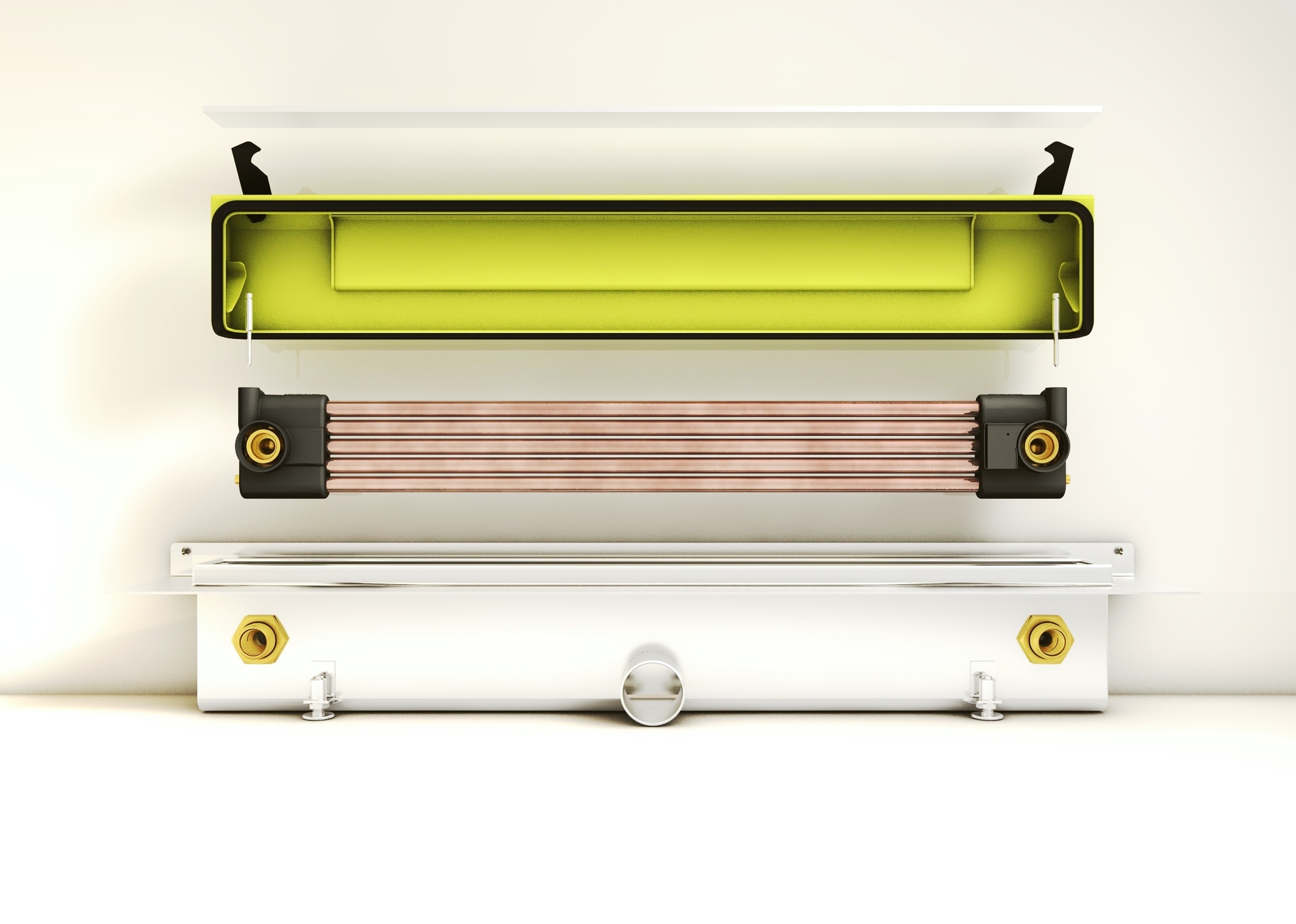 [Image] Joulia shower drain channel with integrated heat exchanger with Wieland copper tubes